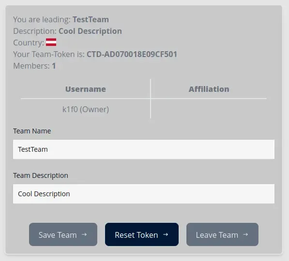 Once a user has created an account, he has the ability to either create a new team on his own, or join an exisitng team via a token that is generated when the team is first created.